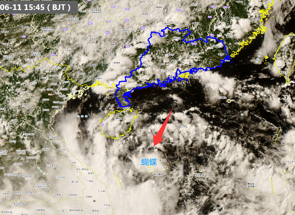今天(11日)08 时,今年第1号台风“蝴蝶”已生成,15时强度等级为热带风暴级,距离海南省三沙市(西沙永兴岛)西偏南方向约15公里,中心附近最大风力8级(18米/秒),中心最低气压993 百帕。